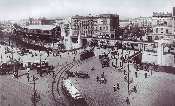 Continuing into the late 19th century, the wall came down and Berlin kept expanding. Mehringplatz and the surrounding area developed into a middle-class neigh and a busy residential and commercial area. Continuing through time, in 1901 the train line we know today was erected and is one of the oldest that remains.